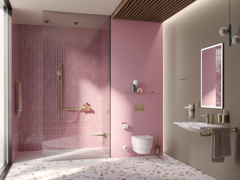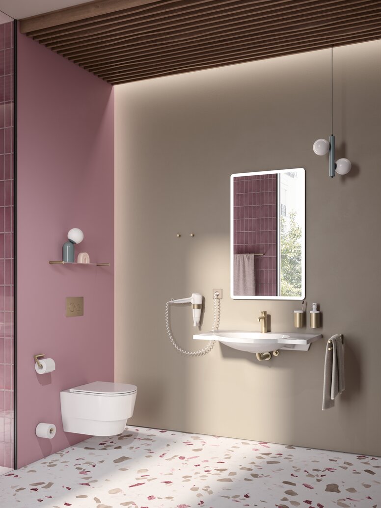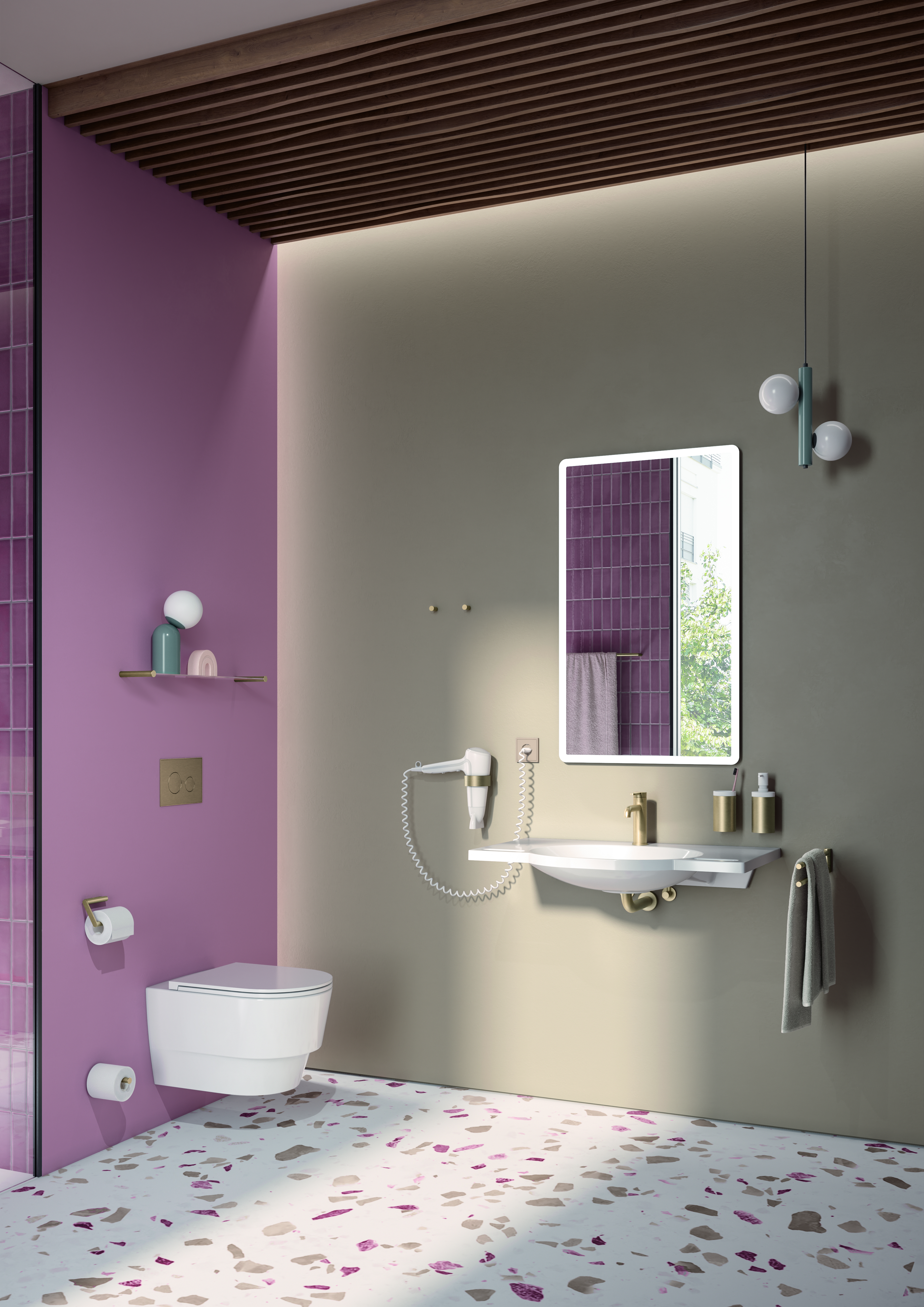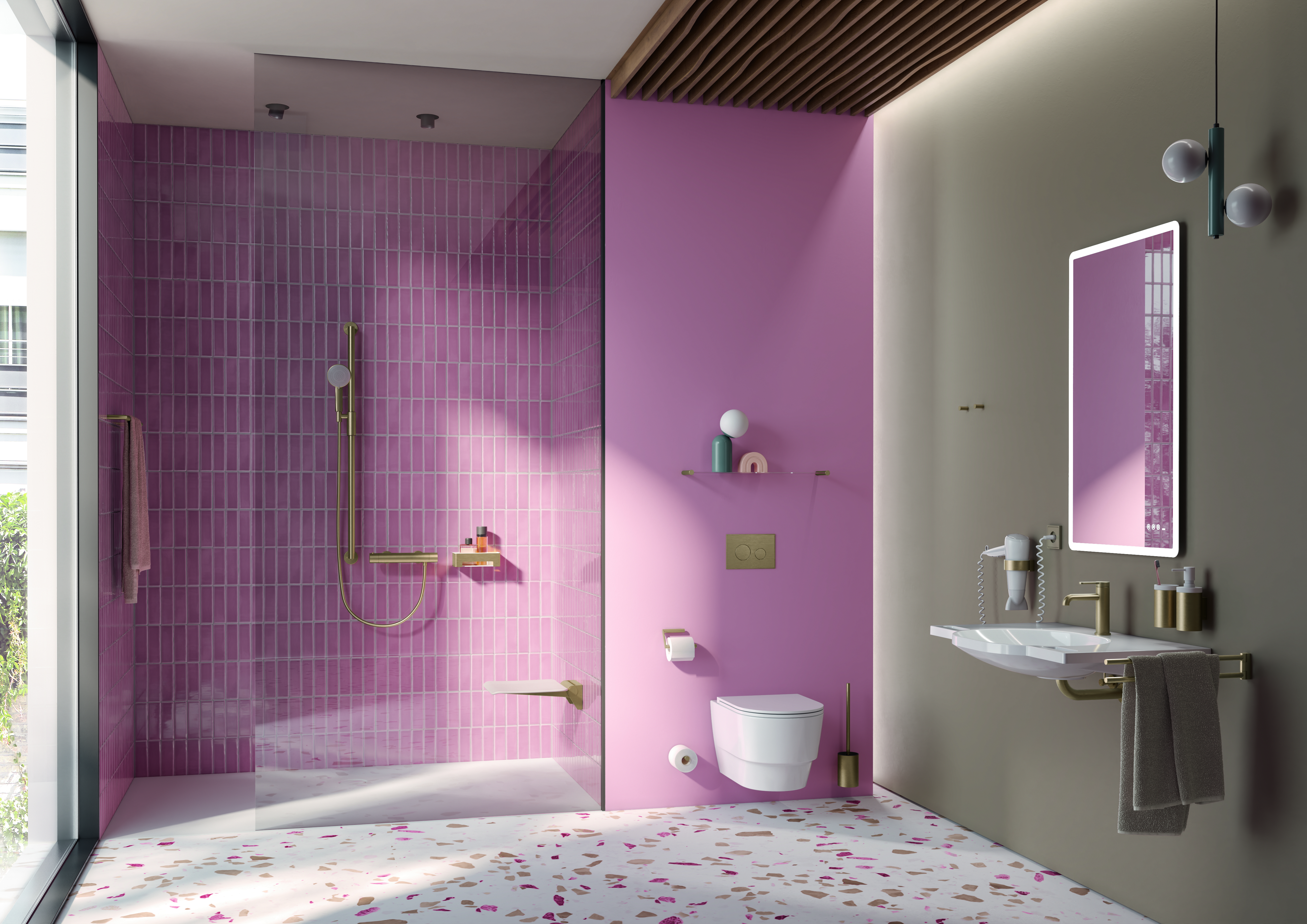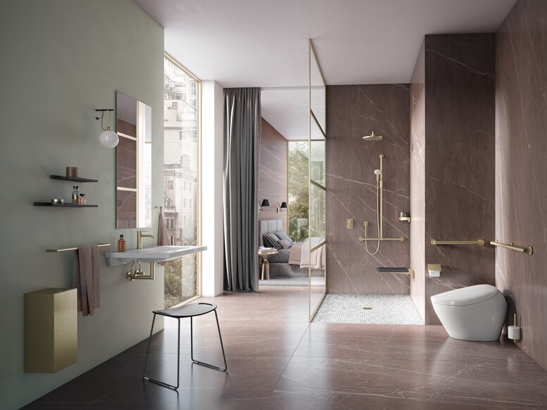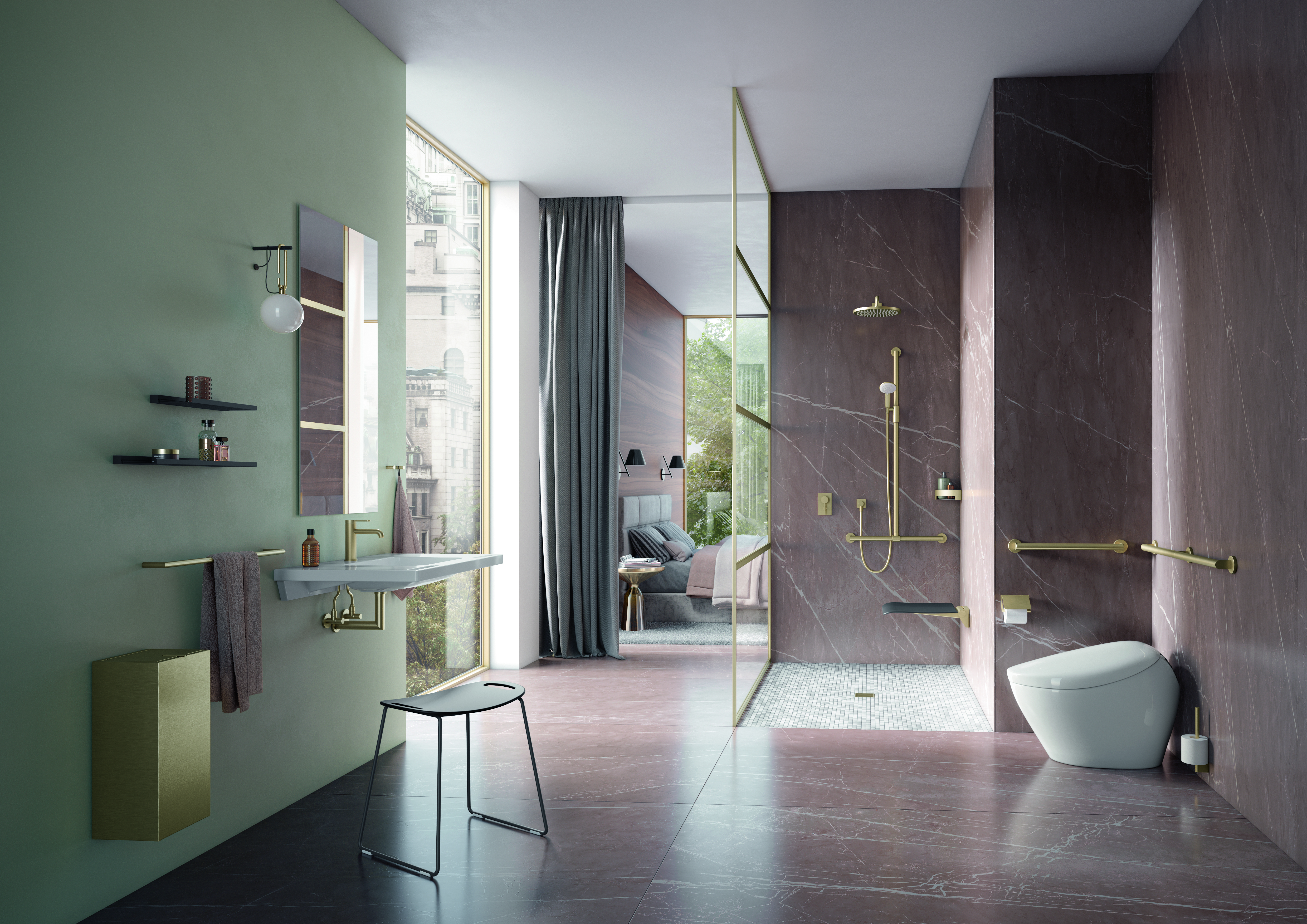 More glamour in the bathroom: Brass, bronze or gold are just some of the new metallic designer surfaces from HEWI that can be used to transform contemporary sanitary rooms into personalised oases of well-being – be it in hotels, in representative public buildings, in elective surgery areas in hospitals or in the bathroom at home. Altogether, the manufacturer is offering four new standard and eight new special colours for its accessible sanitaryware and accessories, all manufactured in the PVD process. This allows for even more diversity and scope for bathroom planning.