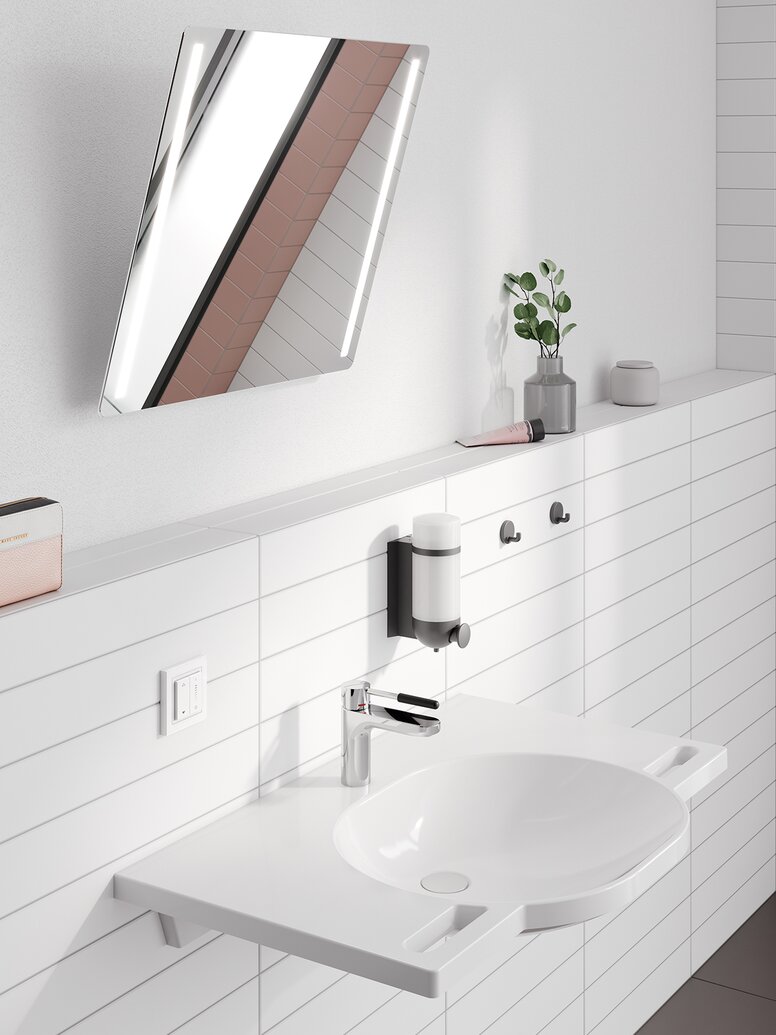 The jury of the Universal Design Award looked at another barrierfree HEWI product and gave a prize to the motorised tilting mirror. As a specialist in barrierfree sanitary solutions, HEWI has an extraordinary flair for solutions that make everyday life even easier and more comfortable. One of these small but fine additions is the motorised tilting mirror, which is a useful addition to the existing range of manual tilting mirrors. Among the jury’s awards were prizes for “comfortable bathroom additions” for all age groups. The tilting mirror can be easily adjusted using a wireless wall switch, making it possible for people of all ages and abilities to use it independently. The Universal Design Award is the only design competition that, in addition to an expert jury, also has a consumer jury that independently awards the “Universal Design Consumer” label each year with around 100 participants aged between 14 and 90. Both committees awarded HEWI the title of Winner.