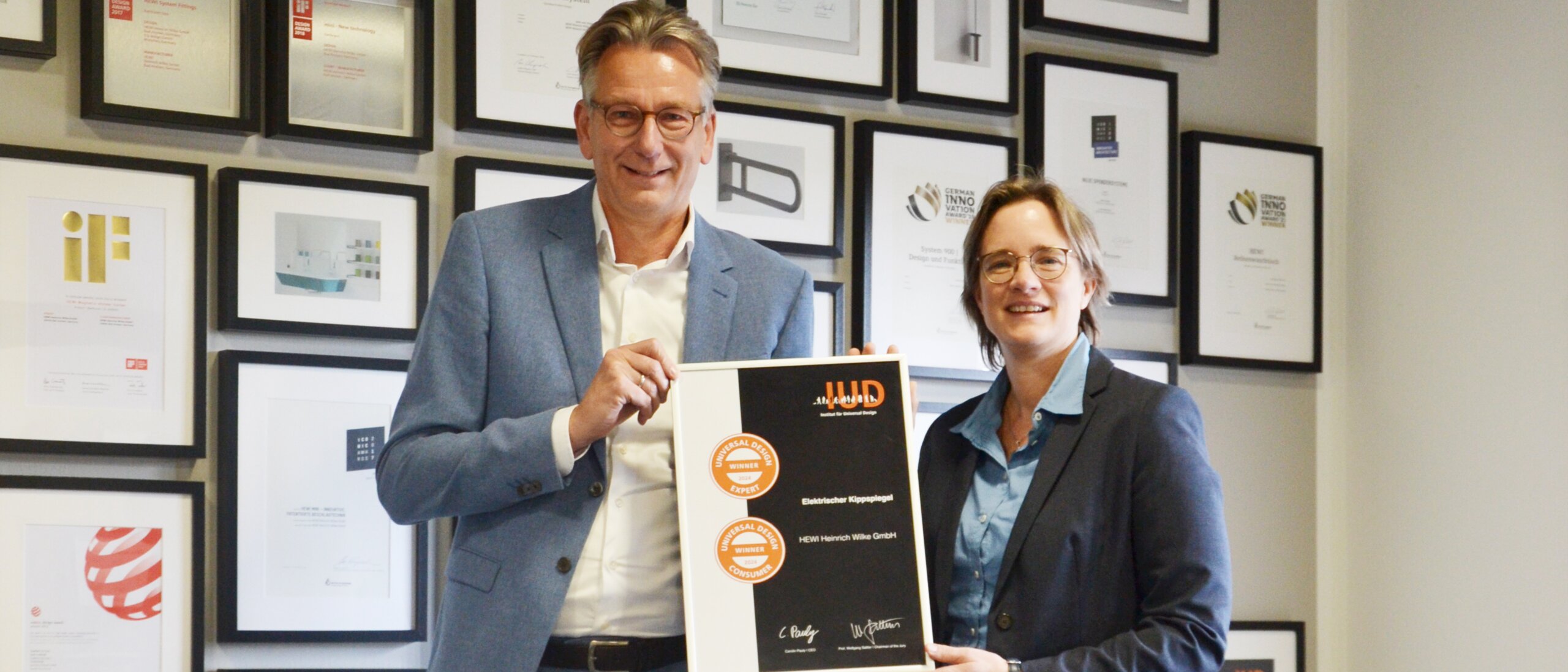 De gemotoriseerde kantelspiegel van HEWI werd tweemaal bekroond met de Universal Design Award 2024 "Winner": hij kreeg zowel de Expert Award als de Consumer Award. De oplossing maakte niet alleen indruk op de vakjury onder leiding van Prof. Wolfgang Sattler, maar ook op de zo’n 100 bezoekers van de Hephata Festtage die stemden als consumentenjury.