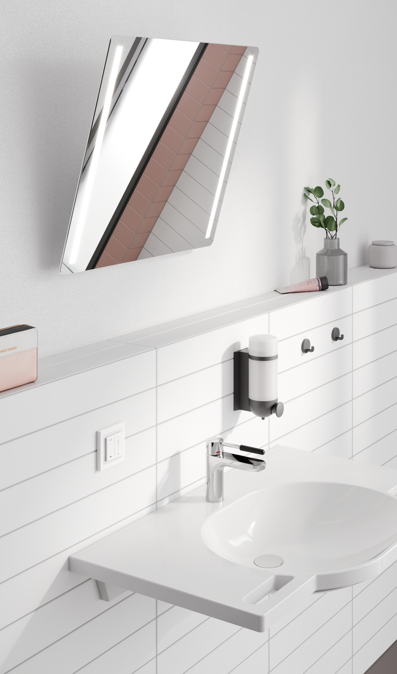 Als expert in barrièrevrije sanitaire oplossingen heeft HEWI een buitengewoon gevoel voor producten die het dagelijks leven gemakkelijker en comfortabeler maken. De gemotoriseerde kantelspiegel breidt als innovatieve oplossing met elektromotor het bestaande assortiment uit. De kantelfunctie kan zo traploos en gemakkelijk worden bediend via een draadloze wandschakelaar zonder batterijen en onderhoud. Een aanzienlijke verbetering van het comfort voor gebruikers - of ze nu zitten of staan. Met zijn hoogwaardige, lineaire ontwerp past hij naadloos in alle sanitaire series en systemen van HEWI en maakt hij zelfstandig gebruik mogelijk voor mensen van alle leeftijden en vaardigheden.