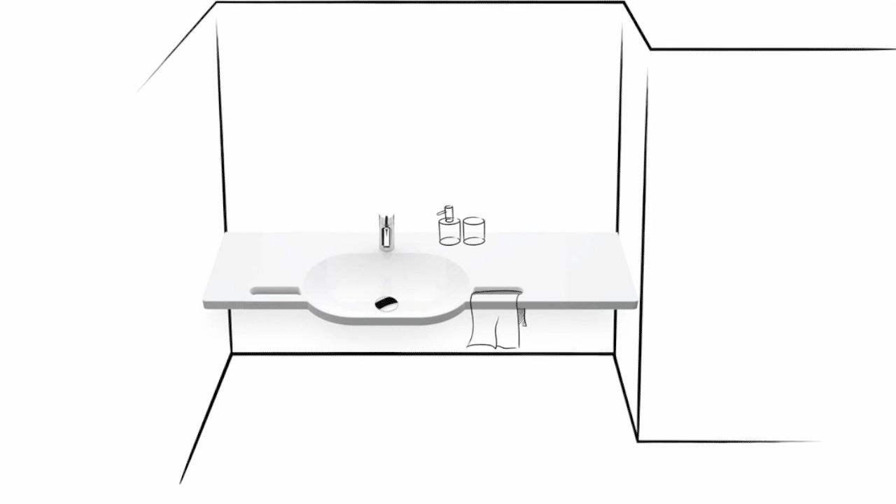 These washbasins combine design. And functionality thanks to their concealed handle edge The handle edge in the front area allows wheelchair users to pull themselves up to the washbasin independently. For other users, the edge provides a secure grip and can be used to aid holding on, sitting down or standing up. This washbasin has a high-gloss, non-porous surface. It is easy to clean, particularly easy to care for and hygienic.