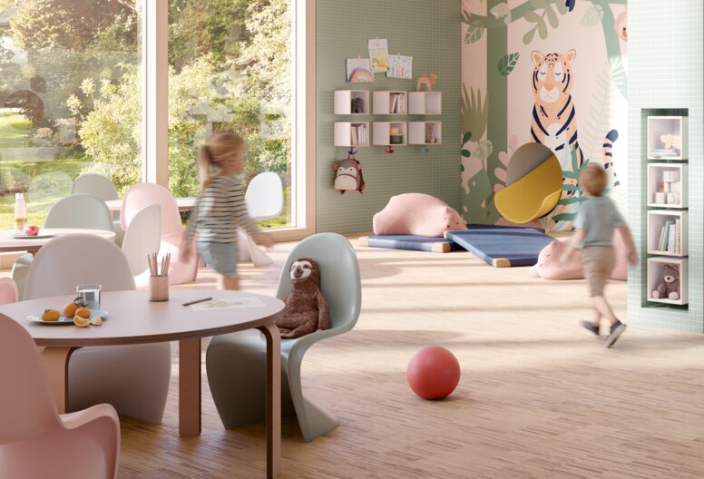 Cheerful and bright colours are ideal for putting children in a positive mood in which it is easy to learn. However, the colour scheme of a room also depends on the age of the children who primarily spend time there and should be adapted to their respective needs.