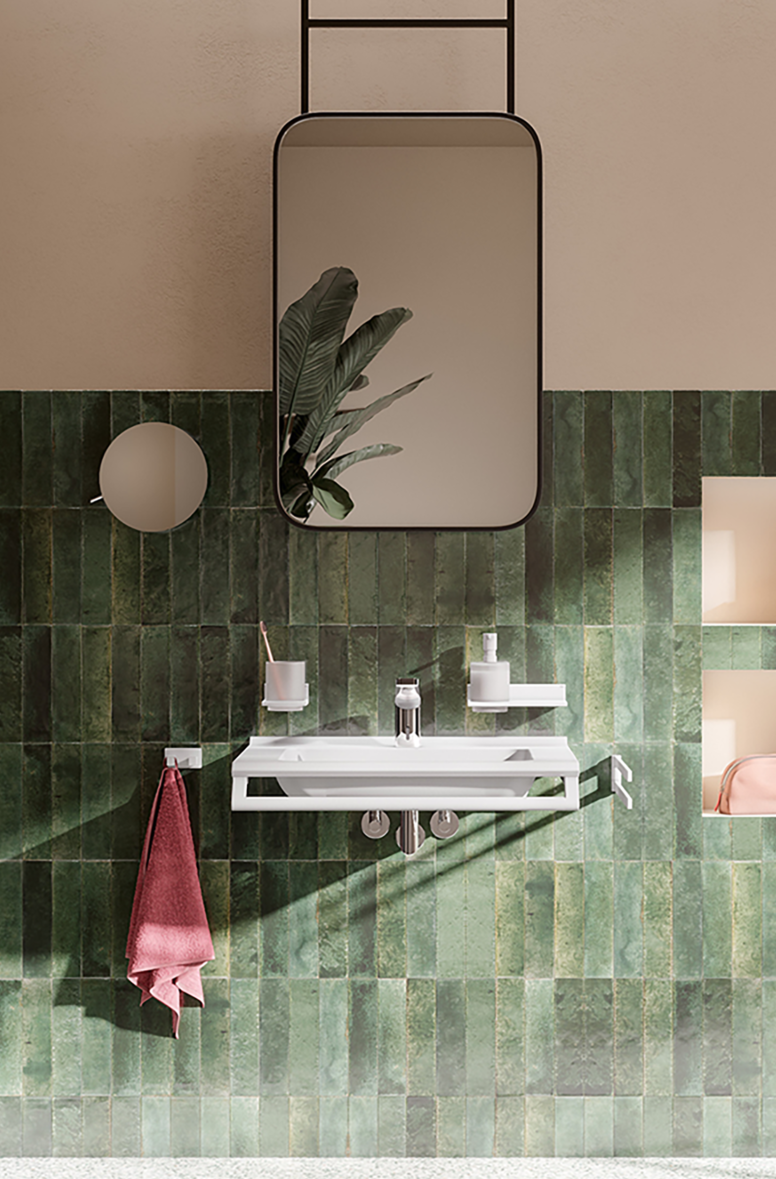 The S 900 Q design variant from HEWI impresses with a quadratic style that creates timeless accents. The clean lines show attitude and skilfully highlight the accessories to great effect. The accessories’ linearity is underlined by the variety of materials and colours in stainless steel, chrome and powder-coated in white, black and grey. Round inserts made of satinised crystal glass create exciting contrasts. With their modern design, the accessories are suitable for use in various types of building. Thanks to the system concept, S 900 Q can be combined with all HEWI solutions for consistent design throughout.