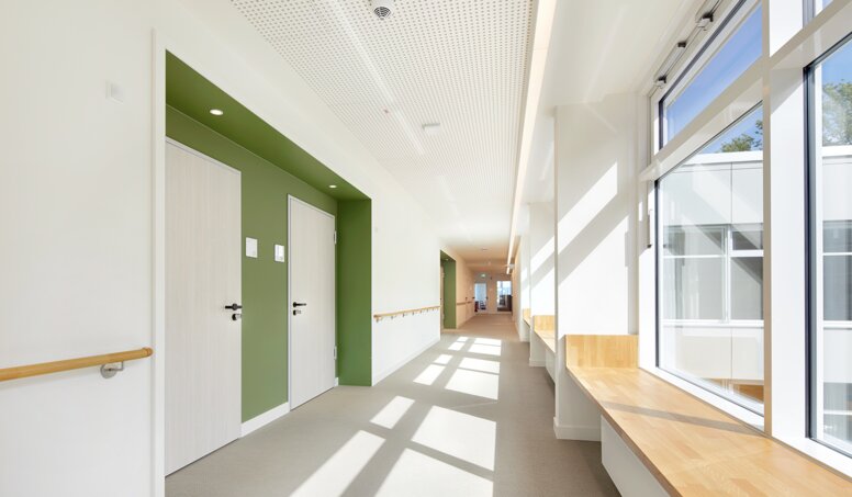 Acoustics are also an important factor of healing architecture to promote comfort in hospitals. Sound-absorbing materials and special acoustic ceilings help to reduce noise levels and create a calmer environment. This improves not only the comfort and recovery process for patients but also the working conditions for staff.