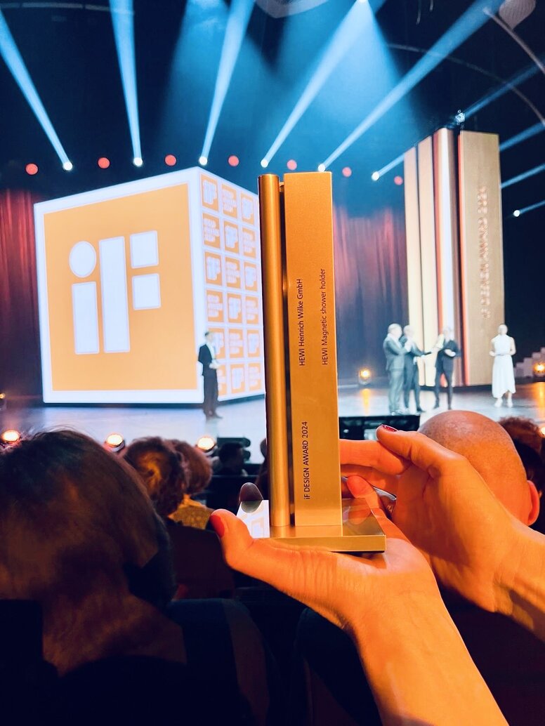 Le nouveau support de douche magnétique HEWI a récemment été honoré dans la catégorie « Salle de bains » par la plus haute distinction que le jury de design puisse décerner : le iF Design Award 2024 Gold. Seules les 75 solutions les plus remarquables parmi les nombreuses soumissions ont été récompensées par la médaille d'or. Le jury de design a souligné à ce sujet : « Jamais auparavant ce prix n'avait été aussi exclusif et précieux que cette année ». Le support de douche magnétique primé a particulièrement convaincu le jury par son maniement simplifié, qui offre un grand confort de douche à toutes les personnes la cérémonie de remise du prix s'est déroulée au Friedrichstadt-Palast à Berlin.