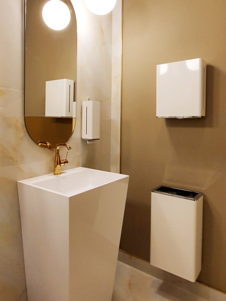 HEWI dispenser systems of the Series 950 complete the sanitary equipment in the Abram Gurewicz's Guesthouse. Aesthetic dispenser systems and waste containers made of high-quality stainless steel harmonise with the accessible sanitary solutions.