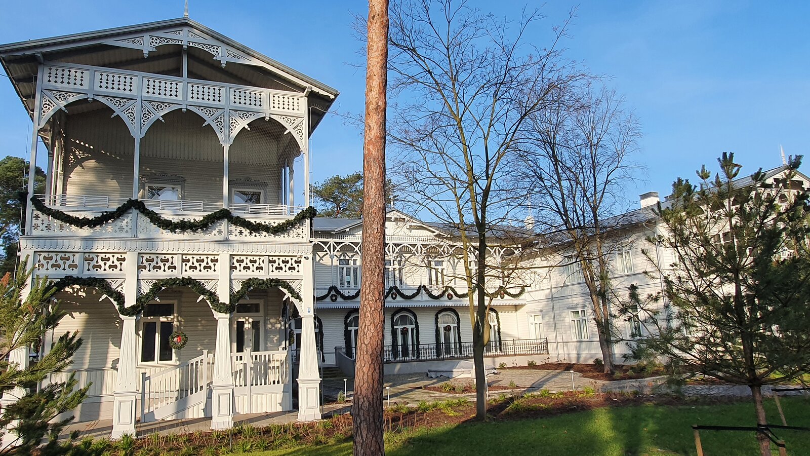 To the south of Warsaw, in Otwock on the Świder River, there was a row of houses at the end of the 19th century. Imposing wooden mansions are built next to each other in the middle of the 19th century. The Abram Gurewicz Guesthouse is part of a once noble ambience: located in the middle of a grove, surrounded by pavilions, designed with lots of glass and light rooms.