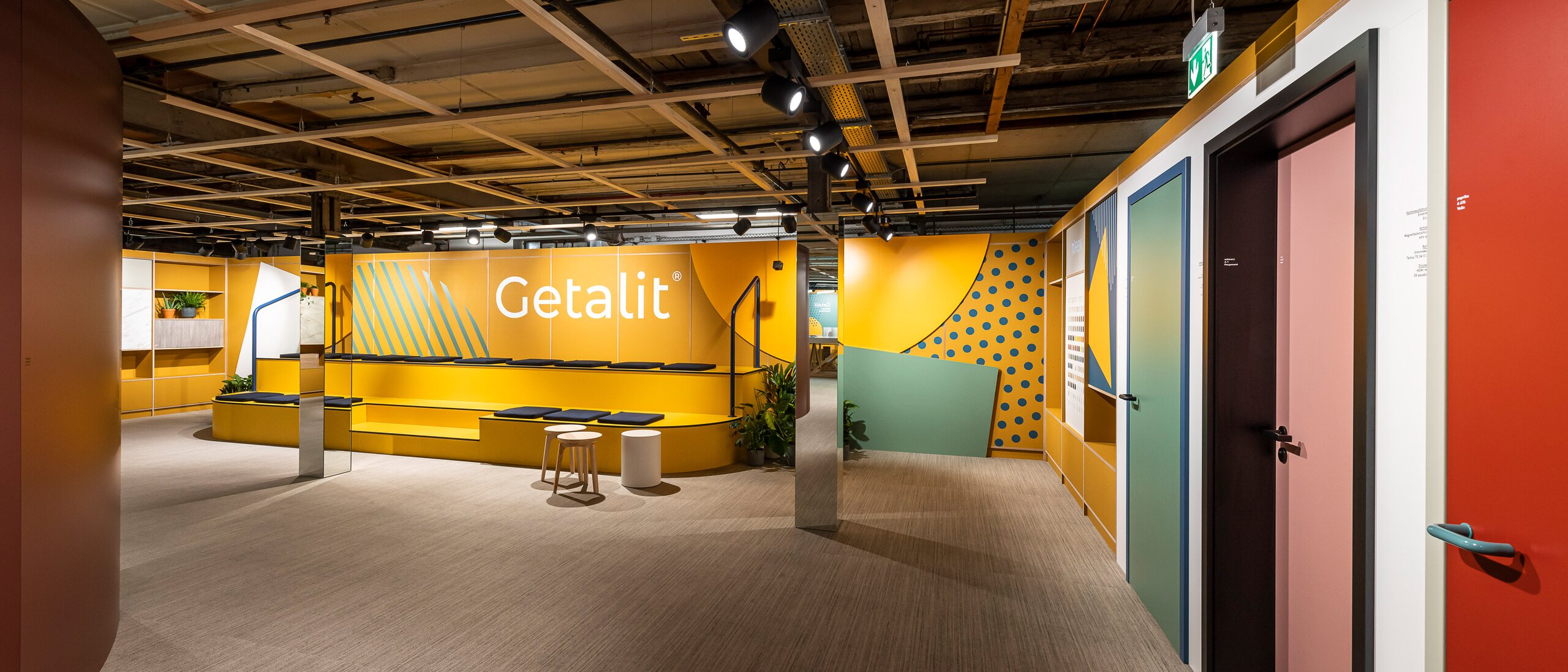 Westag AG has built an impressive showroom in the Alte Fügerei F10 in Rheda-Wiedenbrück for the brand relaunch of its laminate Getalit. The self-contained showroom was integrated into an old production hall. It can be bypassed and shows an emotional representation of the Westag company history on the outside.