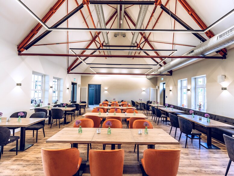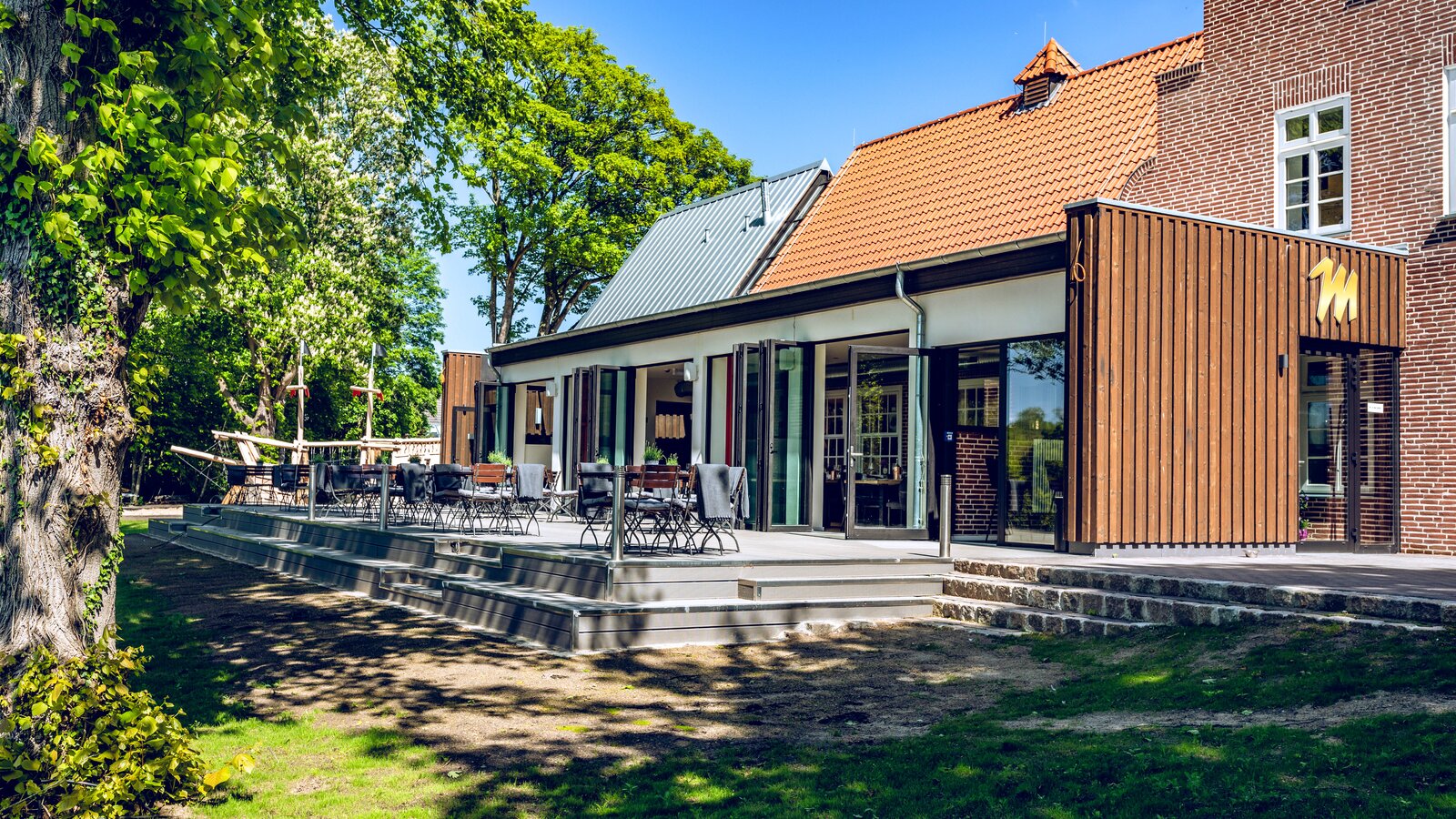 AX5 starannie odnowił główny budynek, który jest chroniony jako zabytek kultury, i przebudował go tak, aby spełniał standardy nowoczesnej restauracji. Zachowano dużą salę w budynku głównym i usunięto wyposażenie z nowszych czasów. AX5 wyburzył dobudówkę z lat 60-tych, a w jej miejsce postawiono nową, w której również mieszczą się instalacje sanitarne. Nowy budynek został zaprojektowany jako współczesna konstrukcja drewniana, która została dobudowana do szczytowej części hali.