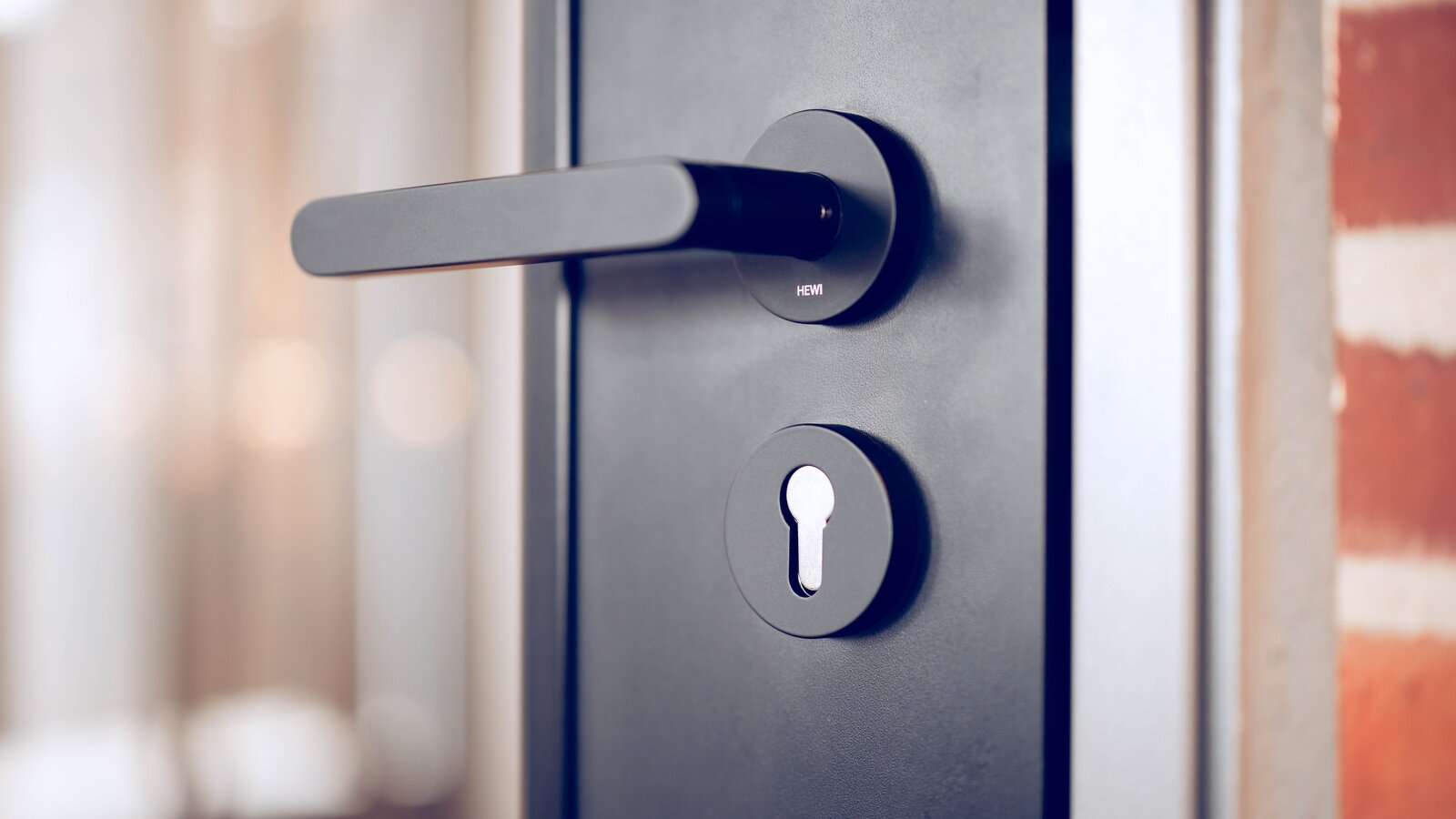 Spójna aranżacja wnętrza wspierana jest przez zastosowane rozwiązania HEWI. Do okuć drzwiowych DSK-BIG i AX5 Architekten wybrali serię 270 w kolorze czarnym matowym - elegancką ikonę stylu zaprojektowaną przez architekta i projektanta Hadi Teheraniego. Dzięki minimalistycznemu wzornictwu produktów, seria ta charakteryzuje się bardzo szczególną estetyką. Zdobywca kilku nagród za wzornictwo, bardzo zmniejszona rozeta w serii 270 podkreśla czystą geometrię ergonomicznej klamki drzwi i stawia ją w zupełnie nowym świetle.