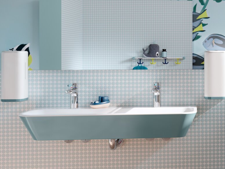 HEWI offers customised solutions for kindergartens and schools that combine design, functionality and durability. From the door to the sanitary areas, robust concepts are created that can withstand heavy use. HEWI can be used to build barrier-free sanitary facilities for schools and daycare centres that meet the respective requirements.