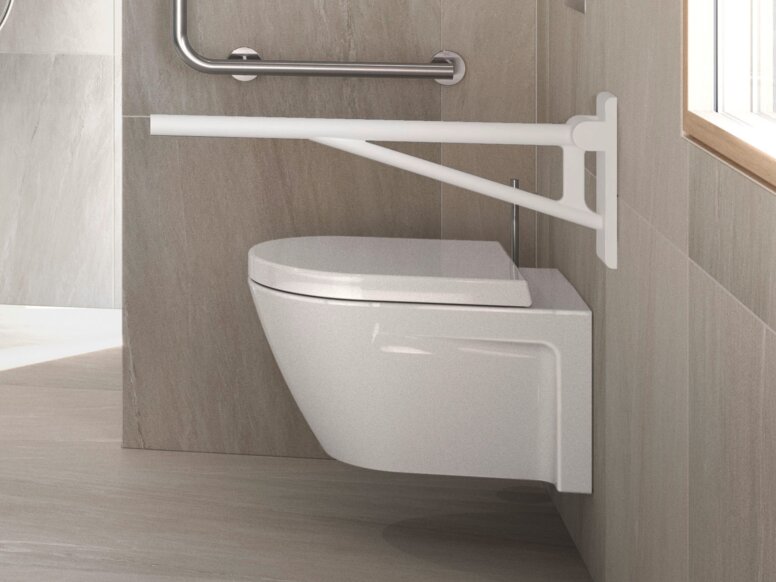 Folding support rails make it easier to stand up and sit down if strength and mobility are limited. Wheelchair users like to use a folding support handle to move from the wheelchair to the toilet and vice versa. A secure hold is essential in the bathroom. This applies not only to barrier-free bathrooms, but also to bathrooms for the elderly or care bathrooms.