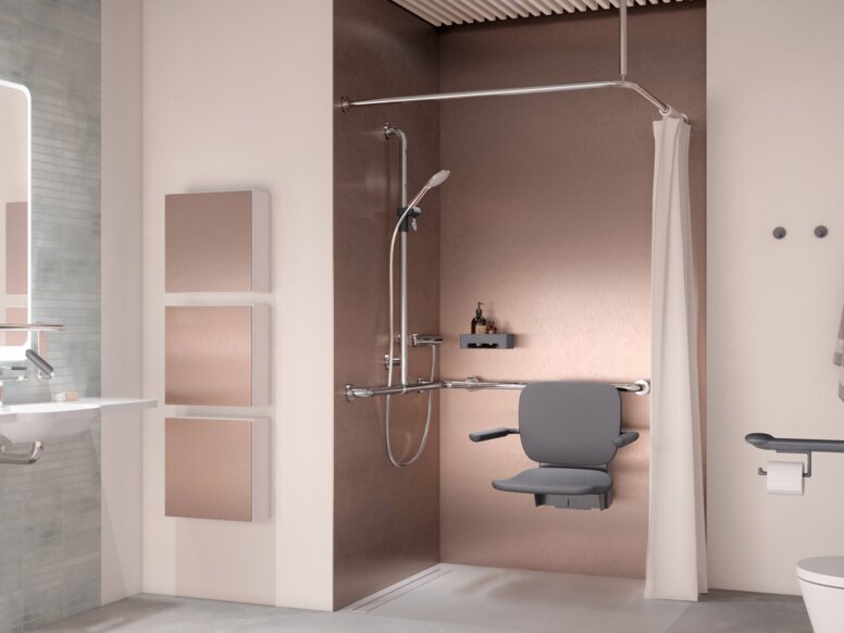 - From washbasins and accessories to fittings, hinged support rails and seats