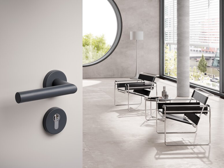 Opcje materiałowe otwierają możliwości indywidualnego designu: Klamki drzwiowe dostępne są w wersji ze stali szlachetnej oraz poliamidu, opcjonalnie w edycji matowej lub malowanej proszkowo.