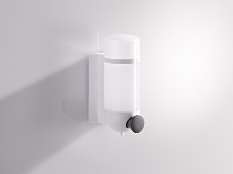 System 800 K is based on the design principles of System 800 - the clear design language and the characteristically large radii were taken up in the material variant System 800 K. The system is made of high-quality polyamide. White is the basic colour of the 800 K sanitary system. The functional elements can be coloured on request.