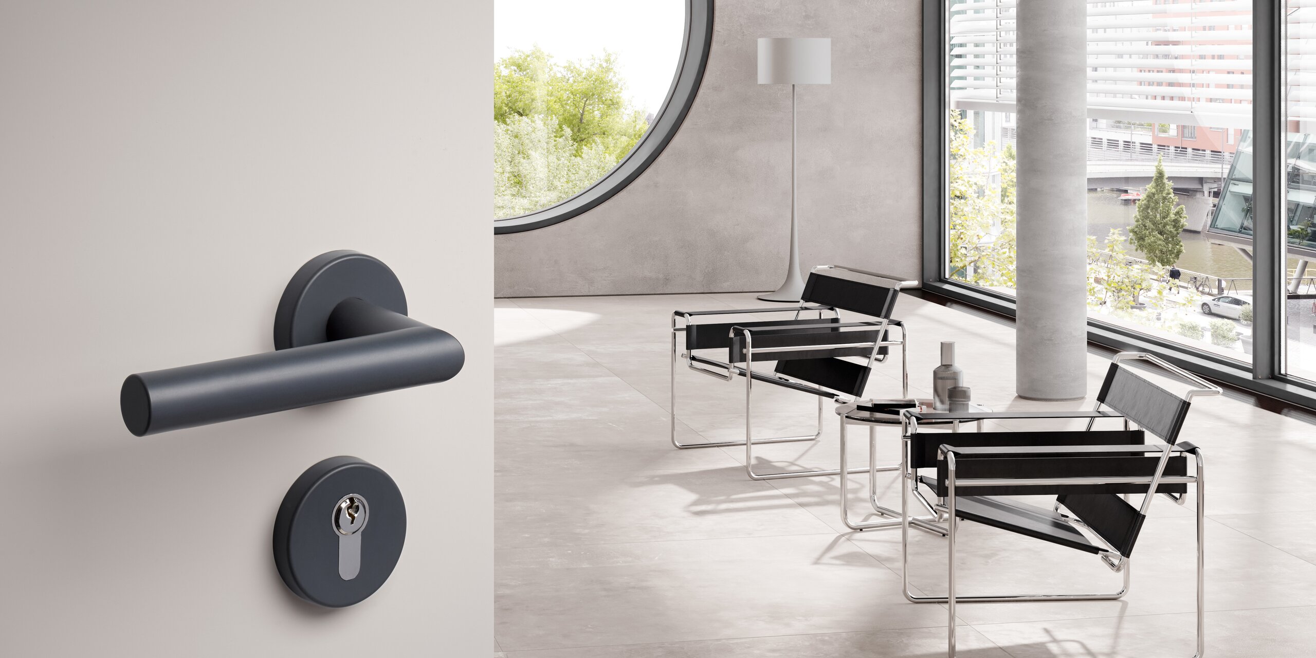 Les options de matériaux ouvrent la voie à un design personnalisé : les poignées de porte sont disponibles en acier inoxydable et en polyamide, au choix en édition mate ou avec un revêtement par poudre.