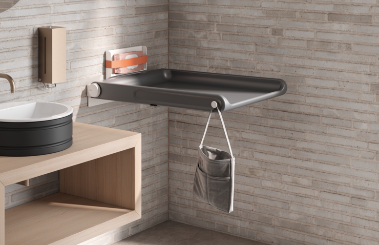 La nouvelle table à langer, HEWI combine une surface de couchage en mousse PUR couleur gris fer facile à nettoyer avec des composants métalliques robustes en blanc grainé mat. La fonction d’ouverture avec frein permet une manipulation en douceur, tandis que des crochets latéraux et un compartiment de rangement offrent un confort supplémentaire. La table à langer allie le respect des normes de sécurité les plus strictes et une manipulation confortable à un design moderne qui s’intègre parfaitement dans les espaces sanitaires publics. La table à langer a été conçue par Holscher Design, une agence danoise renommée et maintes fois primée, spécialisée dans la conception stratégique de produits et forte de plus de 50 ans d'expérience.